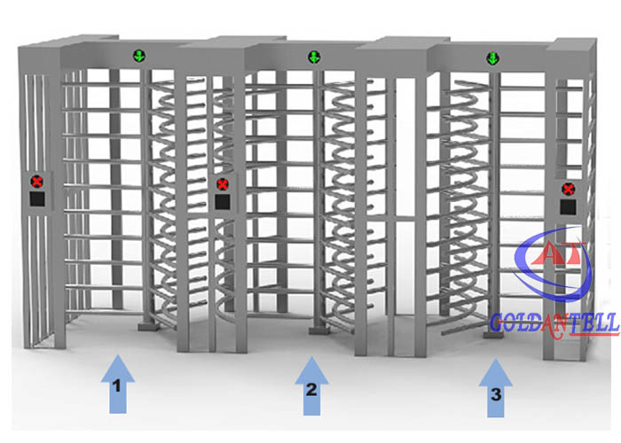 तीन लेन 2250 मिमी पूर्ण ऊंचाई घूमने वाला दरवाज़ा गेट बायोमेट्रिक फेस स्कैनर एलईडी काउंटर