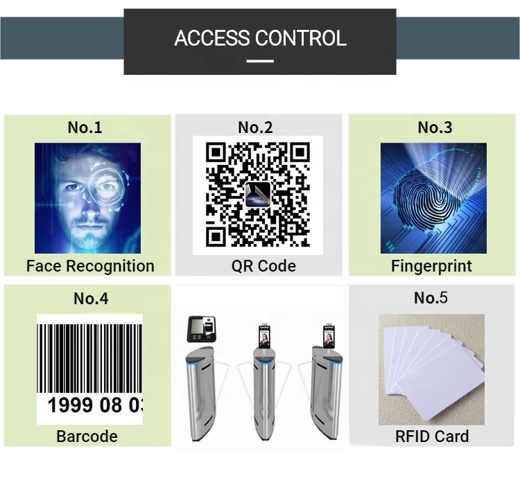 1. हम एक्सेस कंट्रोल सिस्टम की पेशकश कर सकते हैं:चेहरा पहचान/फिंगरप्रिंट/कार्ड रीडर/क्यूआर कोड/बारकोड टिकट प्रणाली।